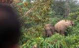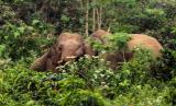 REPUBLIKA.CO.ID, Gajah liar memasuki perkebunan kopi warga KM 37 Jabal Antara, Kecamatan Nisam Antara, Aceh Utara, Aceh, Minggu (3/7/2022). Menurut keterangan warga setempat sebanyak 30 ekor gajah liar memasuki kawasan wisata gunung salak dan permukiman warga serta merusak tanaman kopi dan rumah kebun. ANTARA FOTO/Rahmad