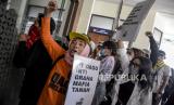 Warga Dago Elos dan Cirapuhan yang tergabung dalam Dago Melawan berunjuk rasa di depan Kantor ATR/BPN Kanwil Jabar, Jalan Soekarno Hatta, Buahbatu, Kota Bandung, Senin (4/7/2022). Dalam unjuk rasa tersebut mereka menuntut kejelasan sikap ATR/BPN terkait status tempat tinggal mereka yang kini diklaim oleh ahli waris berdasarkan putusan Peninjauan Kembali (PK) Mahkamah Agung, mendesak ATR/BPN Kota Bandung memberikan sertifikat warga yang berdomisili sesuai dengan UU Pokok Agraria dan memeriksa kembali eigendom verponding (bukti kepemilikan era Hindia Belanda) di wilayah Dago Elos hingga Cirapuhan. Foto: Republika/Abdan Syakura (FOTO : REPUBLIKA/ABDAN SYAKURA)