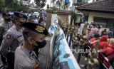 Warga Dago Elos dan Cirapuhan yang tergabung dalam Dago Melawan memblokade gerbang Kantor ATR/BPN Kanwil Jabar saat unjuk rasa di Jalan Soekarno Hatta, Buahbatu, Kota Bandung, Senin (4/7/2022). Dalam unjuk rasa tersebut mereka menuntut kejelasan sikap ATR/BPN terkait status tempat tinggal mereka yang kini diklaim oleh ahli waris berdasarkan putusan Peninjauan Kembali (PK) Mahkamah Agung, mendesak ATR/BPN Kota Bandung memberikan sertifikat warga yang berdomisili sesuai dengan UU Pokok Agraria dan memeriksa kembali eigendom verponding (bukti kepemilikan era Hindia Belanda) di wilayah Dago Elos hingga Cirapuhan. Foto: Republika/Abdan Syakura (FOTO : REPUBLIKA/ABDAN SYAKURA)