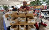 Warga memperlihatkan berbagai jenis kopi arabika dan robusta kualitas terbaik pada festival kopi gemilang di Banda Aceh, Aceh, Ahad (3/7/2022). Festival kopi yang diselenggarakan hingga 5 Juli mendatang sebagai upaya membangkitkan kembali UMKM dam pariwisata Aceh yang terpuruk akibat pandemi COVID-19. (FOTO : ANTARA / Irwansyah Putra)