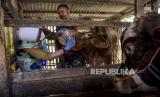 Dokter hewan dari Dinas Ketahanan Pangan dan Pertanian (DKPP) Kota Bandung didampingi peternak memeriksa kesehatan hewan ternak domba di Sukahaji, Kecamatan Babakan Ciparay, Kota Bandung, Senin (4/7/2022). Pemerintah melalui Badan Nasional Penanggulangan Bencana (BNBP) menetapkan Status Keadaan Tertentu darurat Penyakit Mulut dan Kuku (PMK) hingga akhir 2022. Data pada 1 Juli 2022, pukul 12.00 WIB, terdapat 233.370 kasus aktif yang tersebar di 246 wilaya, dan 22 provinsi. (FOTO : REPUBLIKA/ABDAN SYAKURA)