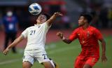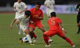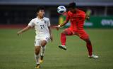 REPUBLIKA.CO.ID,BEKASI -- Pesepak bola Tim Nasional Thailand U-19 Songkhramsamut Namphueng berebut bola dengan pesepak bola Tim Nasional Myanmar U-19 Oakkar Naing dalam laga penyisihan Grup A Piala AFF U-19 2022 di Stadion Patriot Candrabhaga, Bekasi, Jawa Barat, Senin (4/7/2022).