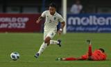 Pesepak bola Tim Nasional Thailand U-19 Thawatchai Inprakhon (kanan) berselebrasi usai membobol gawang Tim Nasional Myanmar U-19 dalam laga penyisihan Grup A Piala AFF U-19 2022 di Stadion Patriot Candrabhaga, Bekasi, Jawa Barat, Senin (4/7/2022). Thailand memenangi laga tersebut dengan skor 3-0. (FOTO : ANTARA/Aditya Pradana Putra)