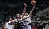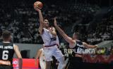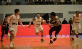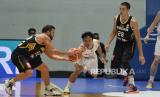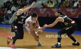 Pebasket Timnas Indonesia Brandon Jawato melakukan drive melewati adangan pemain Yordania dalam pertandingan window ketiga Kualifikasi FIBA World Cup 2023 Grup C Zona Asia di Istora Senayan, Jakarta, Senin (4/7/2022). Pada pertandingan itu Indonesia kalah dengan skor 52-77. (FOTO : Republika/Edwin Putranto)