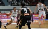Pebasket Timnas Indonesia Muhamad Arighi Hadran Noor melakukan drive melewati adangan pemain Yordania dalam pertandingan window ketiga Kualifikasi FIBA World Cup 2023 Grup C Zona Asia di Istora Senayan, Jakarta, Senin (4/7/2022). Pada pertandingan itu Indonesia kalah dengan skor 52-77. (FOTO : Republika/Edwin Putranto)