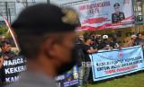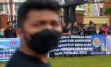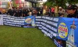 REPUBLIKA.CO.ID,YOGYAKARTA -- Peserta dari Forum Silaturahmi Ormas Jogja menggelar aksi di halaman Polda DIY, Yogyakarta, Selasa (5/7/2022).