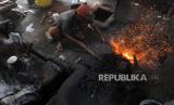 REPUBLIKA.CO.ID,KLATEN -- Perajin pandai besi tradisional membakar bahan besi dan baja saat membuat arit di Segaran, Delanggu, Klaten, Jawa Tengah, Selasa (5/7/2022).