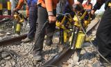 REPUBLIKA.CO.ID, JAKARTA -- Petugas Dinas Jalan Rel KAI melakukan perawatan rel kereta api di jalur relasi Manggarai-Tanah Abang, Pasar Rumput, Jakarta, Selasa (5/7/2022). Perbaikan dan perawatan rel itu dilakukan untuk meningkatkan keamanan dan kenyamanan penumpang seiring meningkatnya frukuensi perjalanan moda transportasi KRL Jabodetabek.
