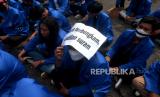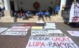 REPUBLIKA.CO.ID, YOGYAKARTA -- Aliansi mahasiswa dari Forum BEM DIY menggelar aksi damai di halaman DPRD Provinsi Daerah Istimewa Yogyakarta, Rabu (6/7/2022). Pada aksi damai ini mereka menuntut pembukaan draf RUU KUHP yang disusun pemerintah. Selain itu juga menuntut pemerintah melibatkan masyarakat dalam penyusunan RUU KUHP yang diajukan ke DPR.
