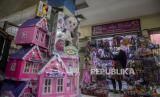 Pedagang saat menata mainan untuk dijual di Pasar Gembrong Baru, Jakarta, Rabu (6/7/2022). Pasca relokasi dari Pasar Gembrong Lama ke Pasar Gembrong Baru akibat pembangunan proyek Jalan Tol Becakayu, para pedagang mengeluhkan mengalami penurunan omzet mencapai 80 persen. Meskipun kini sudah memasuki musim libur sekolah para pedagang mengaku masih belum ada peningkatan penjualan yang signifikan. Republika/Putra M. Akbar (FOTO : Republika/Putra M. Akbar)