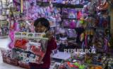 REPUBLIKA.CO.ID, JAKARTA -- Anak-anak saat mencari mainan di Pasar Gembrong Baru, Jakarta, Rabu (6/7/2022). Pasca relokasi dari Pasar Gembrong Lama ke Pasar Gembrong Baru akibat pembangunan proyek Jalan Tol Becakayu, para pedagang mengeluhkan mengalami penurunan omzet mencapai 80 persen. Meskipun kini sudah memasuki musim libur sekolah para pedagang mengaku masih belum ada peningkatan penjualan yang signifikan. Republika/Putra