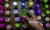 Pedagang menunjukan mainan slime yang dijual di Pasar Gembrong Baru, Jakarta, Rabu (6/7/2022). Pasca relokasi dari Pasar Gembrong Lama ke Pasar Gembrong Baru akibat pembangunan proyek Jalan Tol Becakayu, para pedagang mengeluhkan mengalami penurunan omzet mencapai 80 persen. Meskipun kini sudah memasuki musim libur sekolah para pedagang mengaku masih belum ada peningkatan penjualan yang signifikan. Republika/Putra M. Akbar (FOTO : Republika/Putra M. Akbar)