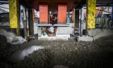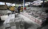 REPUBLIKA.CO.ID, JAKARTA -- Pekerja menyelesaikan pembuatan paving blok di bengkel kerja Rebricks, Jakarta, Kamis (7/7/2022). Dalam sehari para pekerja mampu memproduksi 50 meter persegi paving blok berbahan sampah plastik dengan harga jual Rp110 ribu permeter persegi.