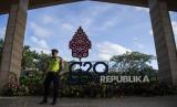 Petugas keamanan berjaga menjelang pelaksanaan Pertemuan Menteri Luar Negeri G20 di Hotel Mulia, Nusa Dua, Bali, Kamis (7/7/2022). Pertemuan tersebut akan membahas dua isu utama yaitu penguatan multilateralisme serta ketahanan pangan dan energi. (FOTO : ANTARA/Sigid Kurniawan)