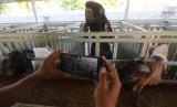 REPUBLIKA.CO.ID,KEDIRI -- Pekerja memotret kambing untuk ditawarkan secara daring di tempat usaha penggemukan kambing Kelurahan Ngronggo, Kota Kediri, Jawa Timur, Jumat (8/7/2022).