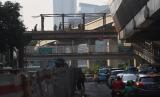 REPUBLIKA.CO.ID,JAKARTA -- Pekerja menyelesaikan pembangunan JPO Stasiun LRT Rasuna Said di Jakarta, Jumat (8/7/2022).