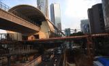 Pekerja menyelesaikan pembangunan JPO Stasiun LRT Rasuna Said di Jakarta, Jumat (8/7/2022). Jadwal uji coba LRT Jabodebek batal dilakukan pada 17 Agustus 2022 dan direncakanan digelar pada Desember 2022 karena adanya kendala dalam skema pembiayaan pembangunan LRT Jabodebek. (FOTO : ANTARA/Indrianto Eko Suwarso)