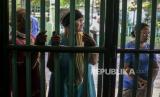 Sejumlah warga menunggu giliran untuk mengambil daging kurban di Masjid Jami Al Huda Muhammadiyah, Tebet, Jakarta, Sabtu (9/7/2022). Sebanyak 17 sapi dan 18 kambing yang dikurbankan di masjid tersebut diaslurkan kepada 1.750 mustahik yang berada di wilayah Kecamatan Tebet. Republika/Putra M. Akbar (FOTO : Republika/Putra M. Akbar)