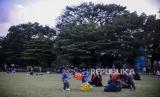 Anak-anak bermain bola di Taman Sempur, Kota Bogor, Jawa Barat, Sabtu (9/7/2022). Taman Sempur merupakan salah satu ruang publik yang dijadikan destinasi wisata alternatif bagi masyarakat untuk mengisi waktu liburan bersama keluarga pada Hari Raya Idul Adha.   (FOTO : Republika/Putra M. Akbar)