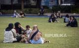 Sejumlah warga saat bersantai di Taman Sempur, Kota Bogor, Jawa Barat, Sabtu (9/7/2022). Taman Sempur merupakan salah satu ruang publik yang dijadikan destinasi wisata alternatif bagi masyarakat untuk mengisi waktu liburan bersama keluarga pada Hari Raya Idul Adha. Republika/Putra M. Akbar (FOTO : Republika/Putra M. Akbar)