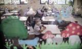 Sejumlah siswa berada di dalam kelas di SDN Tebet Barat 08, Jakarta, Senin (11/77/2022). Pada hari pertama masuk sekolah tahun ajaran baru 2022-2023, SDN Tebet Barat 08 mengadakan apel pagi dan mengenalkan lingkungan sekolah kepada siswa baru kelas satu sekolah dasar. Republika/Putra M. Akbar (FOTO : Republika/Putra M. Akbar)