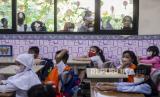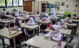 Sejumlah siswa berada di dalam kelas di SDN Tebet Barat 08i, Jakarta, Senin (11/77/2022). Pada hari pertama masuk sekolah tahun ajaran baru 2022-2023, SDN Tebet Barat 08 mengadakan apel pagi dan mengenalkan lingkungan sekolah kepada siswa baru kelas satu sekolah dasar. Republika/Putra M. Akbar (FOTO : Republika/Putra M. Akbar)