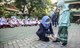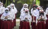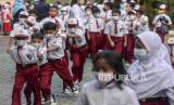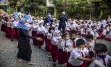 REPUBLIKA.CO.ID,JAKARTA -- Sejumlah siswa berbaris untuk memasuki kelas di SDN Tebet Barat 08, Jakarta, Senin (11/77/2022).