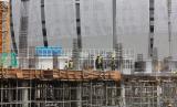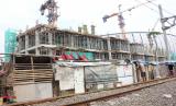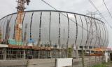 REPUBLIKA.CO.ID, JAKARTA -- Pekerja menyelesaikan pembangunan Rumah Susun Kampung Bayam dengan latar belakang Jakarta International Stadium (JIS) di Jakarta, Senin (11/7/2022). Pemerintah Provinsi DKI Jakarta menargetkan pembangunan rusun tersebut selesai pada September 2022.