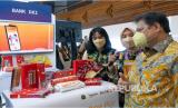 Menteri Koordinator Bidang Perekonomian Republik Indonesia, Airlangga Hartarto (kanan) sedang mengunjungi booth Bank DKI yang turut berpartisipasi pada gelaran Festival Ekonomi dan Keuangan Digital Indonesia (FEKDI) 2022 yang diselenggarakan oleh Bank Indonesia di Bali, (11/7).