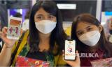 REPUBLIKA.CO.ID, JAKARTA -- Penerima beasiswa Bank Indonesia GENBI (Generasi BI) sedang menunjukkan aplikasi JakOne Pay dari Bank DKI di booth Bank DKI yang turut berpartisipasi pada gelaran Festival Ekonomi dan Keuangan Digital Indonesia (FEKDI) 2022 di Bali, (11/7).