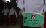 REPUBLIKA.CO.ID, JAKARTA -- Sejumlah siswa mengikuti kegiatan belajar di SMPN 242 Jakarta, Senin (11/7/2022). Pemerintah memberlakukan Pemberlajaran Tatap Muka (PTM) 100 persen di sekolah pada tahun ajaran baru 2022/2023 pada masa PPKM level 1 di Jakarta.