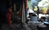 Pekerja memotong dan merebus potongan kulit sapi saat proses pembuatan rambak kulit sapi di Plosowangi, Cawas, Klaten, Jawa Tengah, Senin (11/7/2022). Menurut pekerja, produksi pembuatan rambak kulit saat ini mengalami peningkatan, yang biasanya hanya dapat mengolah satu lembar kulit sapi naik menjadi 15 lembar karena persediaan bahan kulit sapi melimpah saat hari raya Idul Adha. (FOTO : ANTARA/Aloysius Jarot Nugroho)