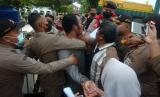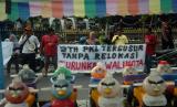REPUBLIKA.CO.ID, TEGAL -- Seorang pedagang kaki lima (PKL) menunjukkan surat pernyataan saat berunjuk rasa di Jalan Taman Pancasila, Tegal, Jawa Tengah, Senin (11/7/2022). Mereka mendesak pemerintah Kota Tegal agar menghentkan larangan berjualan di atas trotoar yang dinilai sangat merugikan karena belum adanya relokasi setelah dua tahun penggusuran PKL.