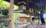 Pengelola memeriksa sarang dari lebah madu yang dibudidayakan di Hutan Kota Srengseng, Kembangan, Jakarta, Senin (11/7/2022). Dinas Pertamanan dan Hutan Kota DKI Jakarta membudidayakan lebah madu trigona (Trigona sp), lebah tanpa sengat sehingga tidak akan membahayakan pengunjung yang berwisata ke Hutan Kota Srengseng. (FOTO : ANTARA/Subur Atmamihardja)