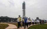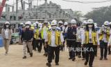 REPUBLIKA.CO.ID, JAKARTA -- Menteri PUPR Basuki Hadimuljono (kanan) saat meninjau proyek revitalisasi Taman Mini Indonesia Indah (TMII) di Jakarta, Selasa (12/7/2022). Kunjungan tersebut untuk melihat langsung progres revitalisasi TMII yang dipersiapkan untuk KTT G20.