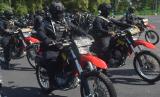 Personel Brimob mengendarai sepeda motor lengkap dengan persenjataan saat mengikuti gelar pasukan pengamanan Pertemuan 3rd Finance Ministers and Central Bank Governors (FMCBG) dan Finance and Central Bank Deputies (FCBD) di Nusa Dua, Bali, Selasa (12/7/2022). Pengamanan pertemuan rangkaian Presidensi G20 yang berlangsung 13-16 Juli 2022 tersebut melibatkan sekitar 1.600 personel gabungan dari berbagai unsur. (FOTO : ANTARA/Nyoman Budhiana)