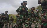 Personel TNI berbaris lengkap dengan persenjataan saat mengikuti gelar pasukan pengamanan Pertemuan 3rd Finance Ministers and Central Bank Governors (FMCBG) dan Finance and Central Bank Deputies (FCBD) di Nusa Dua, Bali, Selasa (12/7/2022). Pengamanan pertemuan rangkaian Presidensi G20 yang berlangsung 13-16 Juli 2022 tersebut melibatkan sekitar 1.600 personel gabungan dari berbagai unsur. (FOTO : ANTARA/Nyoman Budhiana)