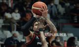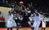 Pebasket timnas Indonesia Marques Bolden melakukan shooting saat melawan Arab Saudi pada pertandingan Fiba Asia Cup 2022 di Istora Senayan, Selasa (12/7/2022). Pada pertandingan itu Indonesia menang dengan skor 80-54. (FOTO : Republika/Edwin Dwi Putranto)