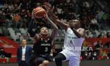 Pebasket timnas Indonesia Derrick Michael Xzavierro melakukan drive saat melawan Arab Saudi pada pertandingan Fiba Asia Cup 2022 di Istora Senayan, Selasa (12/7/2022). Pada pertandingan itu Indonesia menang dengan skor 80-54. (FOTO : Republika/Edwin Putranto)