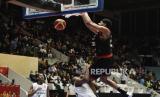 Pebasket timnas Indonesia Marques Bolden melakukan slam dunk saat melawan Arab Saudi pada pertandingan Fiba Asia Cup 2022 di Istora Senayan, Selasa (12/7/2022). Pada pertandingan itu Indonesia menang dengan skor 80-54. (FOTO : Republika/Edwin Dwi Putranto)