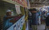 Sejumlah calon penumpang membeli tiket di Terminal bayangan Bus Antarkota Antarprovinsi Pondok Pinang, Jakarta, Selasa (12/7/2022). Kementerian Perhubungan mengeluarkan aturan terbaru untuk Pelaku Perjalanan Dalam Negeri (PPDN) yang menggunakan transportasi darat, laut, dan udara yang belum mendapatkan vaksinasi ketiga atau booster yakni kini diwajibkan untuk melampirkan tes negatif rapid tes antigen yang sampelnya diambil dalam kurun waktu 1x24 jam atau tes negatif PCR yang sampelnya diambil dalam kurun waktu 3x24 jam, yang akan berlaku per tanggal 17 Juli 2022.  (FOTO : ANTARA/Galih Pradipta)