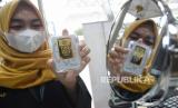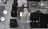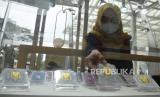 REPUBLIKA.CO.ID, JAKARTA -- Seorang pegawai menunjukkan kepingan emas di gerai penjualan emas di Gedung Antam, Jakarta, Selasa (12/7/2022). Harga dasar emas batangan yang dijual oleh produsen emas PT Aneka Tambang pada perdagangan Selasa (12/7) tercatat senilai Rp966.000 per gram atau mengalami penurunan harga Rp3.000 (0,31 persen) jika dibandingkan pada perdagangan hari sebelumnya yang mencapai angka Rp969.000 per gram.