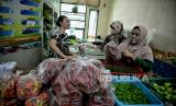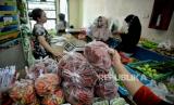Warga berbelanja bawang merah di Pasar Mitra Tani, Jakarta, Rabu (13/7/2022). Di tengah lonjakan sejumlah harga kebutuhan bahan pokok seperti cabai merah keriting, cabai rawit merah, bawang merah dan telur, sejumlah warga mengaku terbantu dengan adanya Pasar Mitra Tani yang menjual sejumlah komoditas dengan harga murah. Untuk harga cabai merah keriting dijual seharga Rp 70 ribu per kilogram atau lebih murah Rp 60 ribu dari harga pasar sekitar Rp 140 ribu per kilogram dan harga cabai rawit merah Rp 75 ribu per kilogram dari harga pasar kisaran Rp 120 ribu per kilogram. Sementara untuk telur ayam dijual per kilogram sekitar Rp 25 ribu atau lebih murah Rp 5 ribu dari harga pasar dan bawang merah Rp 45 ribu per kilogram dari harga pasar sekitar Rp 63 ribu per kilogram. Republika/Thoudy Badai (FOTO : Republika/Thoudy Badai)