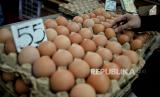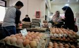 Warga berbelanja telur di Pasar Mitra Tani, Jakarta, Rabu (13/7/2022). Di tengah lonjakan sejumlah harga kebutuhan bahan pokok seperti cabai merah keriting, cabai rawit merah, bawang merah dan telur, sejumlah warga mengaku terbantu dengan adanya Pasar Mitra Tani yang menjual sejumlah komoditas dengan harga murah. Untuk harga cabai merah keriting dijual seharga Rp 70 ribu per kilogram atau lebih murah Rp 60 ribu dari harga pasar sekitar Rp 140 ribu per kilogram dan harga cabai rawit merah Rp 75 ribu per kilogram dari harga pasar kisaran Rp 120 ribu per kilogram. Sementara untuk telur ayam dijual per kilogram sekitar Rp 25 ribu atau lebih murah Rp 5 ribu dari harga pasar dan bawang merah Rp 45 ribu per kilogram dari harga pasar sekitar Rp 63 ribu per kilogram. Republika/Thoudy Badai (FOTO : Republika/Thoudy Badai)