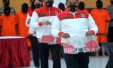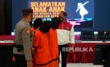 REPUBLIKA.CO.ID, YOGYAKARTA -- Tersangka kejahatan terhadap anak, eksploitasi dan distribusi materi pornografi dan kesusilaan korban anak melalui jaringan medsos dan media online dihadirkan saat konferensi pers di Polda DIY, Rabu (13/7/2022).