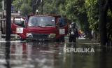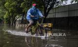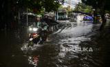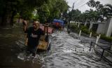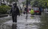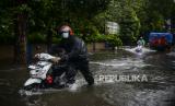 REPUBLIKA.CO.ID, JAKARTA -- Warga berjalan melewati genangan air di Jalan Siaga Raya, Pejaten, Jakarta, Rabu (13/7/2022). Tingginya intensitas hujan dan buruknya drainase mengakibatkan jalan tersebut tergenang air setinggi 30 sentimeter dan membuat lalu lintas tersendat.