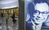 Seorang anak mengamati foto Presiden Pertama Indonesia Soekarno di Museum Konferensi Asia Afrika (MKAA), di Bandung, Jawa Barat, Kamis (14/7/2022). Untuk memeriahkan liburan sekolah, pengelola Museum Asia Afrika menggelar program Seru Bersama Liburan di MKAA (Seblak) yang menampilkan pameran temporer KAA, pemutaran film anak, dan cerita anak-anak Asia Afrika yang digelar hingga 17 Juli 2022 mendatang . (FOTO : ANTARA/Raisan Al Farisi)