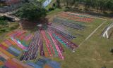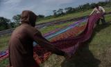 Pekerja melakukan proses penjemuran kain batik di Pekalongan, Jawa Tengah, Kamis (14/7/2022). Pemerintah Kota Pekalongan mencatat realisasi nilai ekspor produk kerajinan pelaku UMKM seperti batik, olahan hasil perikanan dan sarung palekat dari Januari hingga April 2022 mencapai 7.495.602 US Dollar dengan tujuan ekspor di sejumlah negara Eropa, Asia, dan Australia. (FOTO : ANTARA/Harviyan Perdana Putra)