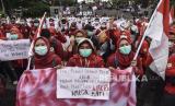 REPUBLIKA.CO.ID, TASIKMALAYA -- Massa dari Forum Komunikasi Honorer Nakes (FKHN) Kabupaten Tasikmalaya menggelar aksi unjuk rasa di Setda, Singaparna, Kabupaten Tasikmalaya, Jawa Barat, Kamis (14/7/2022).