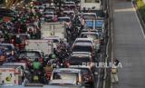 REPUBLIKA.CO.ID, JAKARTA -- Sejumlah kendaraan terjebak kemacetan di Jalan MT Haryono, Cawang, Jakarta, Kamis (14/7/2022). Kemacetan tersebut akibat dari proyek revitalisasi Halte Transjakarta yang membuat ruas jalan menyempit.